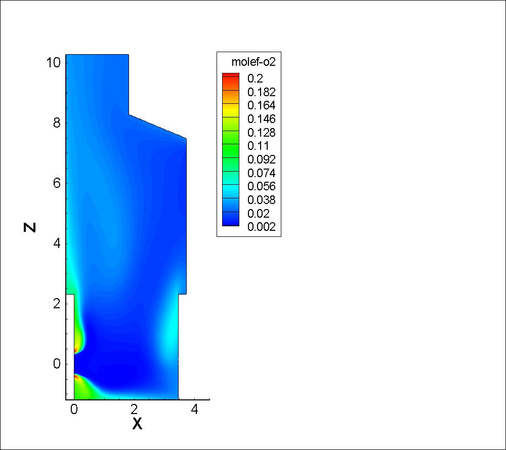 对每一个燃气燃烧器,我公司均采用CFD计算流体力学数值模拟技术进行验证,以确保燃烧稳定、NOx排放低、流场及温度场合理。下图为我公司进行的模拟结果。
